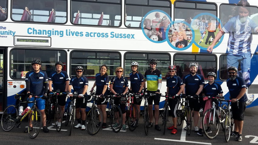 Amex riders gather at the start of the AITC Amex Stadium to Paris ride 2015