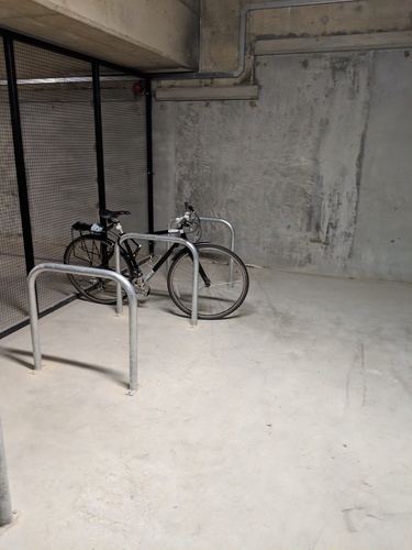 First day at our brand new office block. First user of the new bike facility.