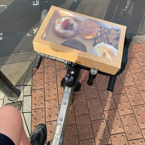 Handlebars provide optimum shelf for transporting cakes to my team