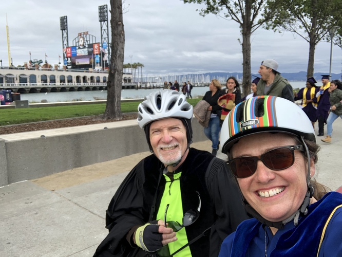 Dave Dempsey and I riding to ATT park for graduation