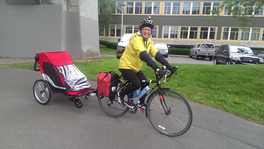 Mike Lee carts home a PC tower and other gear