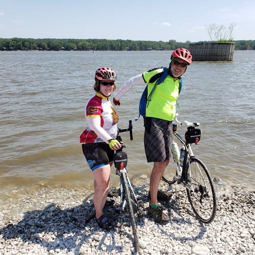 Dipping tires in the Mississippi in Keokuk, IA at the end of RAGBRAI 2019
