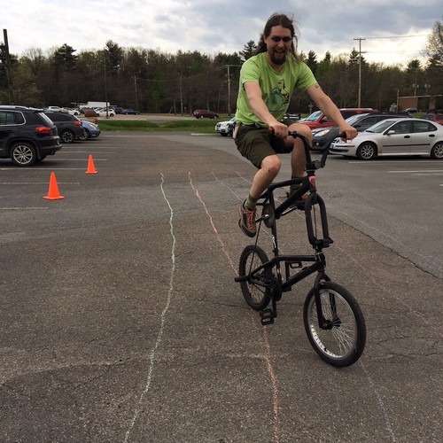 Riding the Burton Tall Bike at our Bikes & Brews event.